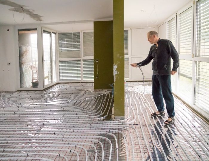 Yerleştirilen izolasyon straforlarının oksijen bir bariyere sahip plastik borular ve içerisinden geçecek sıcak su yolu hazırlanır. Gelecek su için bir bağlantı noktası bulmak da gerekir. Bu bağlantı ya bir kazandan ya da kombiden gelecektir.